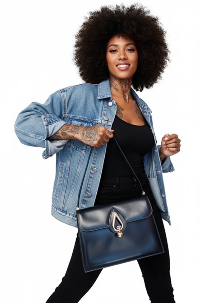 Ce petit bijou est confectionné dans un cuir véritable de haute qualité (100% cuir), dont la richesse et la patine racontent une histoire. Sa couleur, un bleu pétrole profond et chic, est incroyablement tendance et facile à assortir. Ce coloris rare lui confère une note d’originalité tout en restant d’une sophistication absolue, parfait pour sublimer une tenue de jour comme de soirée.